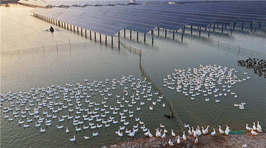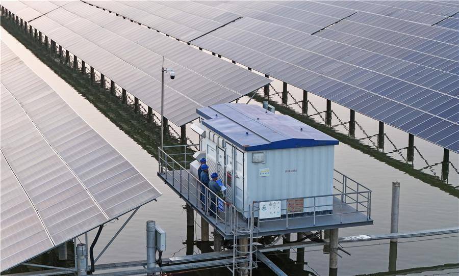 12月16日,在安徽来安施官镇龙王坝水库的渔光互补光伏电站内办理股票配资,电力运维人员开展迎峰度冬保电专项巡检,保障这座11兆瓦水上光伏电站稳定运行,让绿色电能温暖寒冬、赋能乡村振兴。(徐斌 文/图)
